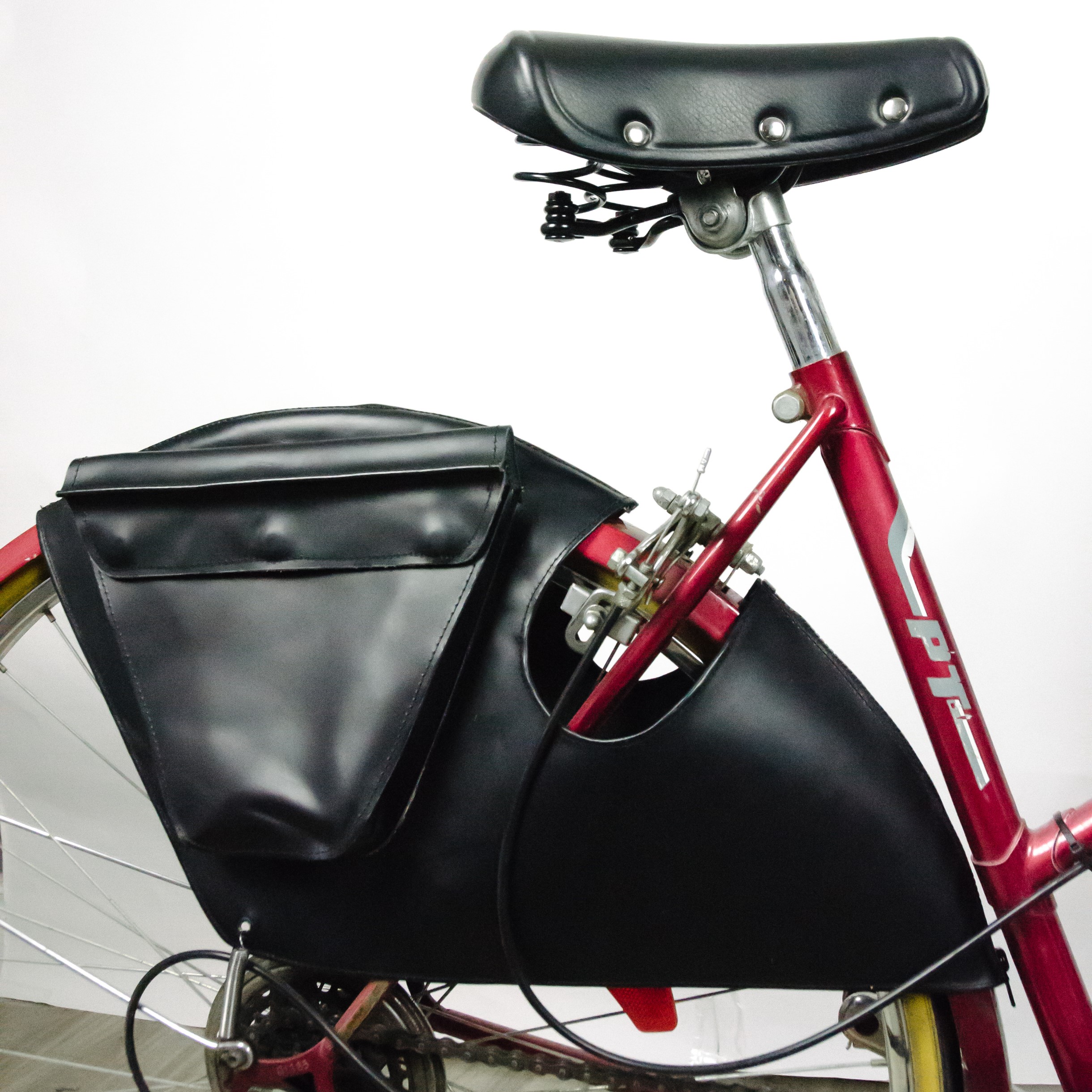 #1. A handcrafted leather skirt guard w/ a pair of attachment springs.
